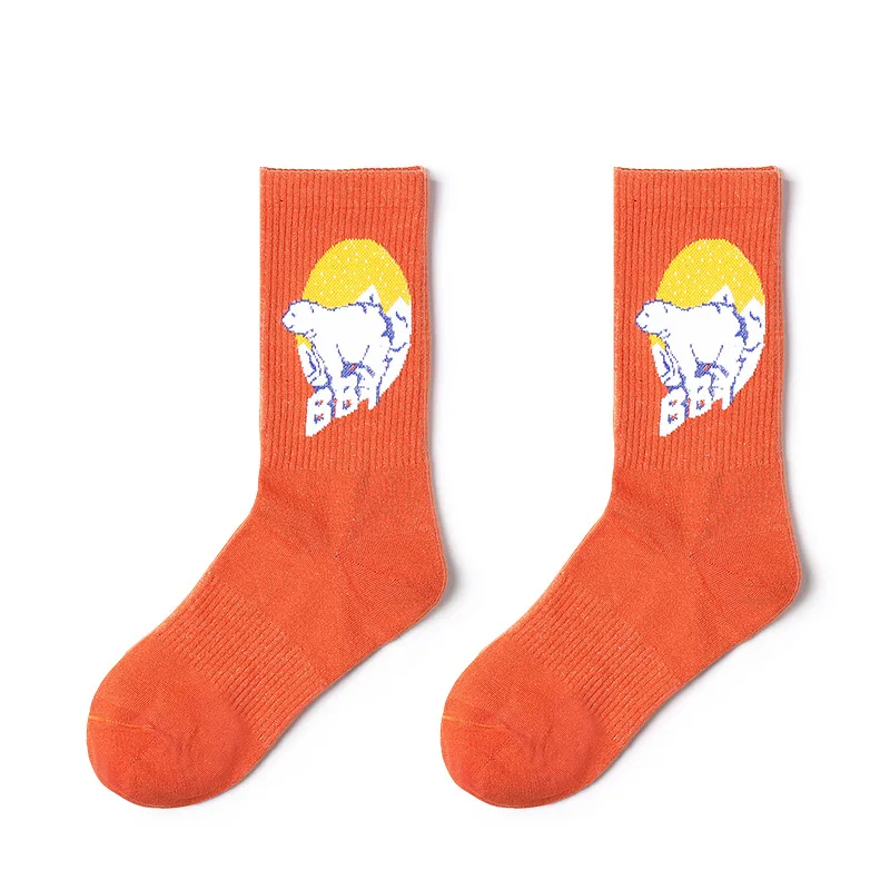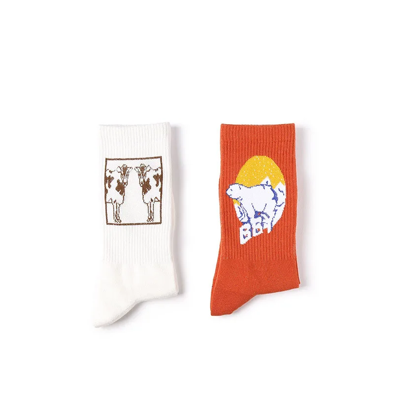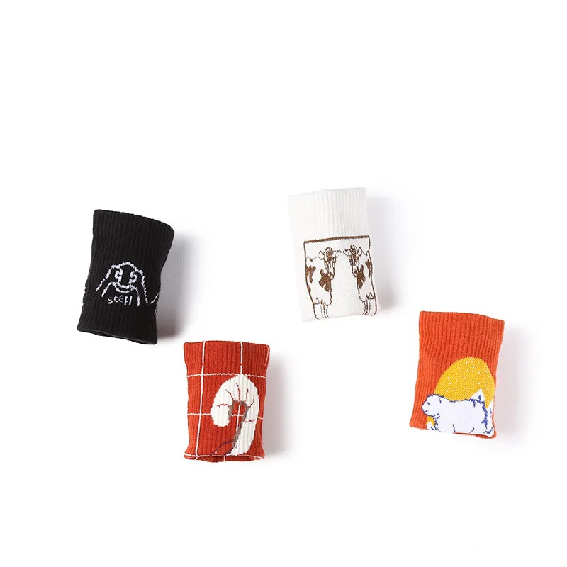 Men Casual Cartoon Animal Socks Creative Design Bear Cow Cotton Winter Socks Stripe Solid Fashion S